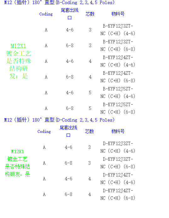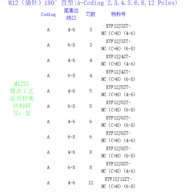 M12(公插头接插件镀金)